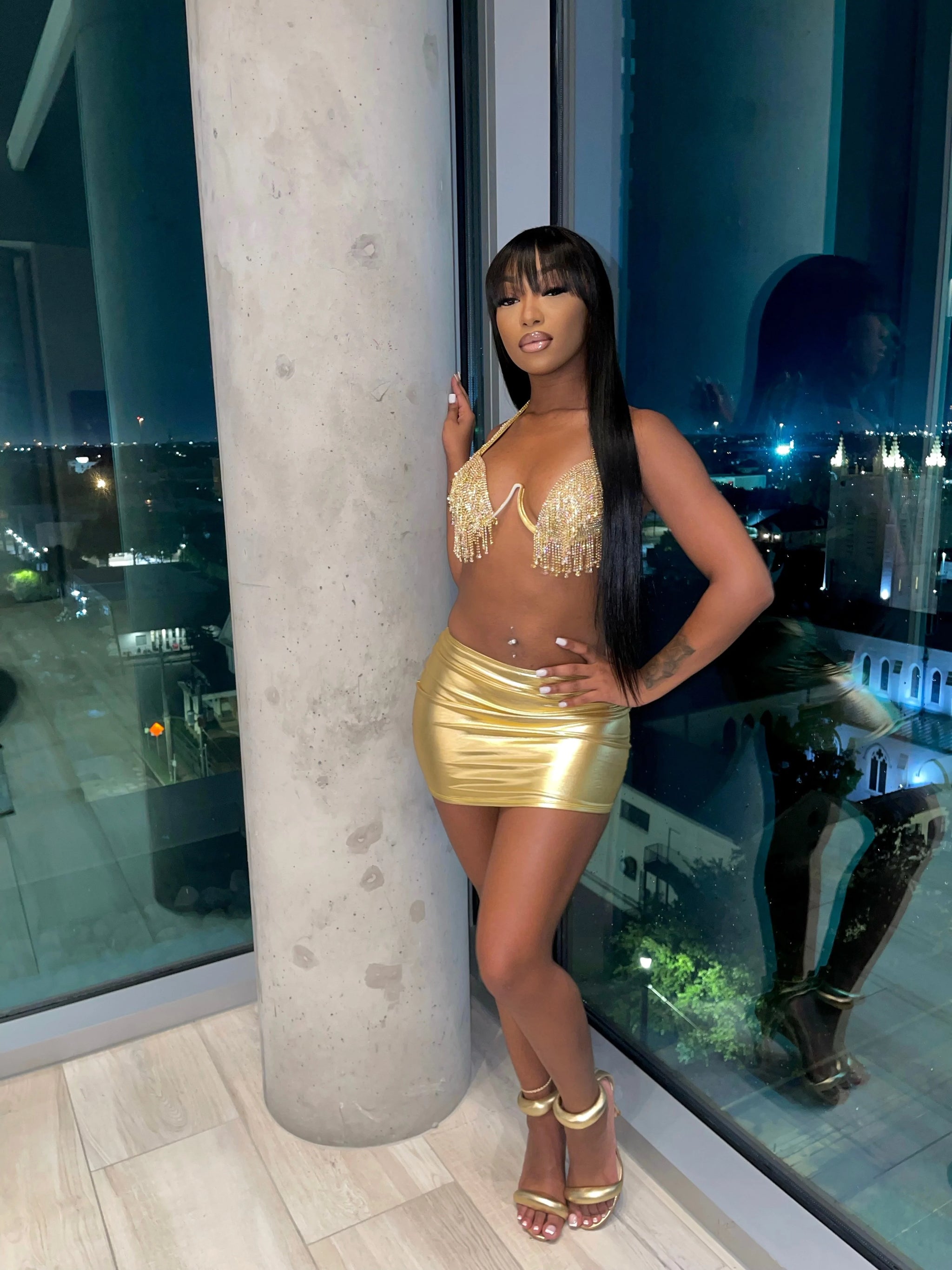 - Wanna bring the heat? Slip into this show-stopping co-ord featuring diamanté bralette and a beautiful matching skirt, we’re absolutely here for it